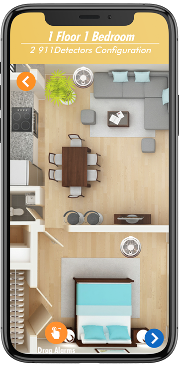 911Detector app display a full screen floor plan based on your specifications to give you a better idea how many floors/rooms you have in your residence and how many alarms you should have working.